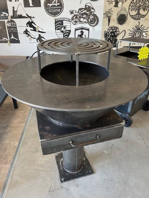 La Société AUBIPOSE, ferronnerie située à Aubignan dans le Vaucluse, vous propose la fabrication sur mesure de braséros en fer sur roulettes ou sur pied, avec son tiroir afin de faciliter le retrait des cendres.