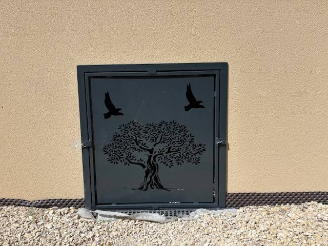 La Société AUBIPOSE, ferronnerie située à Aubignan dans le Vaucluse, vous propose la fabrication sur mesure (avec ou sans pose) de trappe vide sanitaire. Elle peut être faite en tôle pleine en totalité ou alors avec insertion d'un décors au choix.